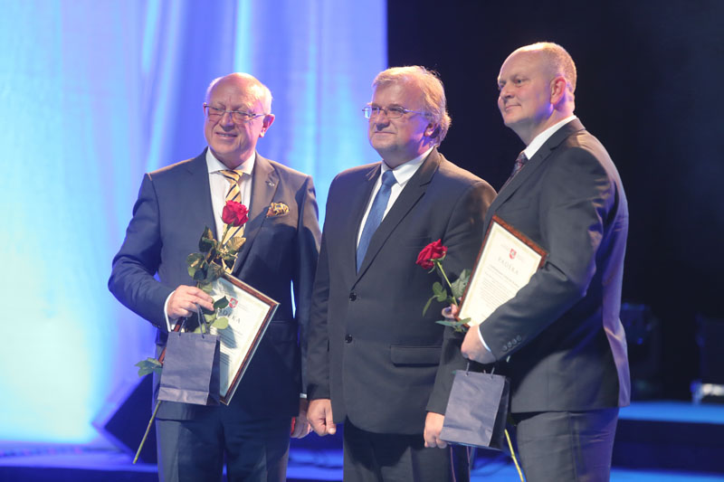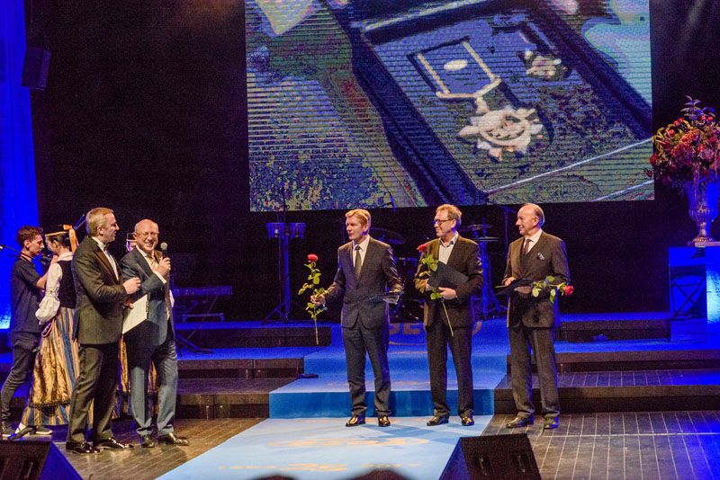 Sveikinimų ciklas scenoje baigtas aristokratiškais apdovanojimais. Lietuvos pramonininkų konfederacijos prezidentas R. Dargis konfederacijos Profesijos riterio ženklais apdovanojo "Begos" terminalų vadovą Rytį Rutkauską, komercijos direktorių Karolį Kuzmarskį, krovos komplekso pamainos viršininką Klaidą Šernių.