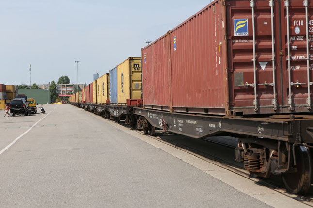 NUKRAUNAMI."Progrese" konteineriai nukraunami nuo geležinkelio bagonų.