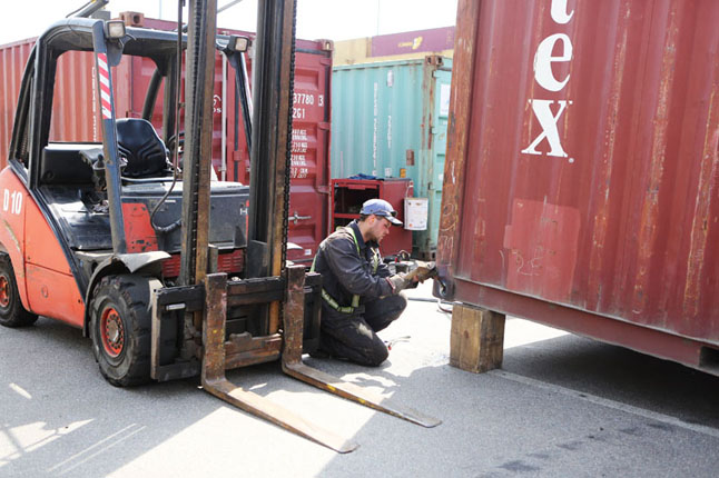 Pasak R. Juškos, konteineriai keičiami naktį, o iškraunami tik dieną. "Taip yra todėl, kad šis darbas pavojingas. Konteineryje yra prekė, kurios negali nei sulankstyti, nei subraižyti, nei sudaužyti. Visos tos mašinos, nors yra sudaužytos, tačiau kiekviena jų turi savo "ligos" istoriją. Jeigu bus daugiau pažeidimų nei nurodyta joje, atsakomybė tenka mums. Konteineris yra atidaromas dalyvaujant klientui ir viskas sutikrinama per apžiūrą", - pasakojo R. Juška.