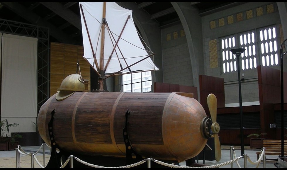 Plaukdamas po vandeniu, šis laivas buvo varomas sraigtu, kurį suko rankomis jame sėdinti trijų žmonių įgula.