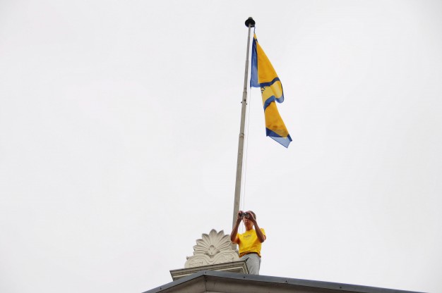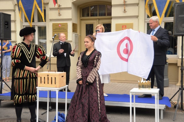 Klaipėda tapo ne vien siautulingiausiu Lietuvos miestu artėjančiomis dienomis, bet ir miestu, virš kurio nuo šiol plevėsuos ir Taikos vėliava, kurią merui įteikė Taikos vėliavos komiteto pirmininkė Auksė Narvilienė. A. Narvilienė linkėjo, kad šis simbolis, reiškiantys grožį, gėrį, išmintį, niekada neapleistų uostamiesčio. Pažymint šį reikšmingą įvykį, į dangų buvo paleisti du balti balandžiai.