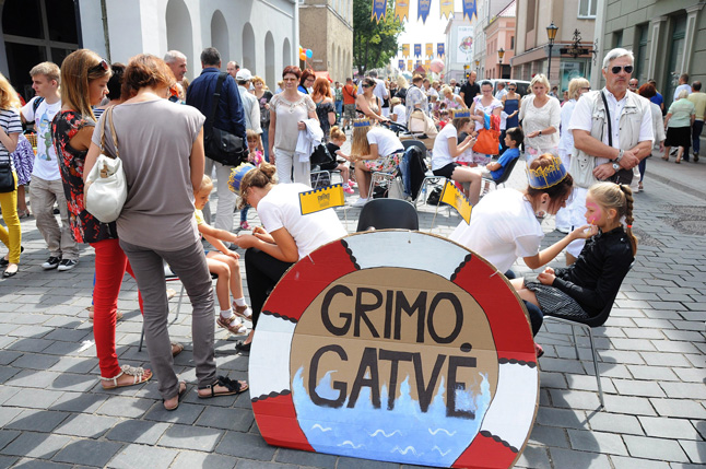 Didelio vaikų dėmesio sulaukė ir į aikštę vedusi Tiltų gatvė, ne pirmą kartą šioje Jūros šventėje tapusi “Grimo gatve”. Per keletą minučių vaikų veidai buvo nuspalvinti ryškiomis spalvomis ir tokiomis formomis, kokių tik jie panorėjo – primenančiomis šuniukus, drugelius ar tiesiog karininkus, kurių veidus maskavo miško kamufliažo spalvos.