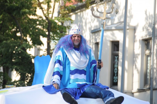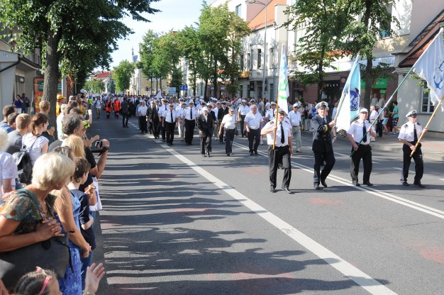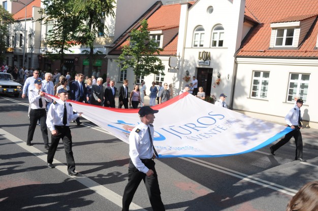 Penktadienį prieš prasidedant šventinei eisenai miesto gatvės, kuriomis ji žygiavo, buvo pilnos žmonių. Lietuvos aukštosios jūreivystės mokyklos studentai nešė Lietuvos, Klaipėdos, Jūros šventės vėliavas. Pirmose gretose žygiavo šalies ministras pirmininkas Algirdas Butkevičius, susisiekimo ministras Rimantas Sinkevičius, Klaipėdos meras Vytautas Grubliauskas, Jūros šventę vadinantis tai vasaros kalėdomis, tai metų atlaidais, Klaipėdos valstybinio jūrų uosto direkcijos generalinis direktorius Arvydas Vaitkus. Už jų senoviniuose automobiliuose važiavo jūros veteranai su savo damomis , žygiavo rimti ir orūs Jūrų kapitonų asociacijos, Lietuvos jūrininkų sąjungos nariai, kaip visada nuotaiką pakeliantis Karinių jūrų pajėgų orkestras, šventiškai pasipuošę jūrinių kompanijų ir organizacijų darbuotojai. Šiemet AB „Klaipėdos nafta“ į šventinę eiseną pasiėmė ir savo augintinius. AB „Smiltynės perkėla“ darbuotojus lydėjo žuvėdrų klyksmas. AB Vakarų laivų gamykla nustebino galinga platforma ant ratų su didžiuliu rykliu, vežėjų kompanija „Vlantana“ iš sunkvežimio liejo ant žmonių vandenį. Kai kas šaudė konfeti, kai kas šoko, kai kas dainavo. Eisenoje žygiavo ir rusų burlaivio „Kruzenštern“ įgula, ir Baltarusijos, ir Gruzijos delegacijos. Dalyviams buvo smagu pamojuoti gatvėje stovinčiam kaimynui ar draugui. Eisenai atėjus į Kruizinių laivų terminalą, prasidėjo šventės atidarymas.