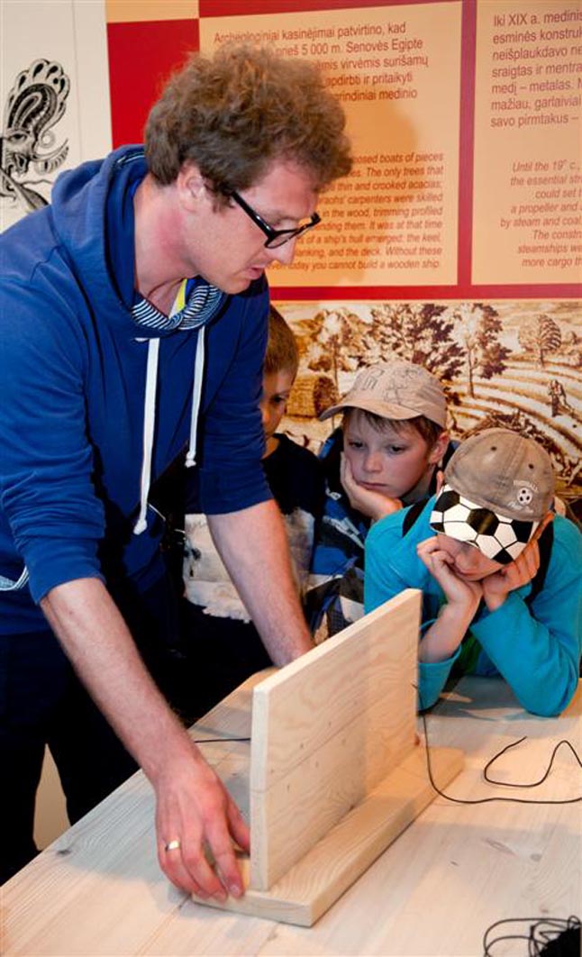 Parodos lankytojai gali išbandyti tris pagrindinius laivo denio lentų tvirtinimo būdus: jie patys išmoks susiūti arba suleisti lentas karaveliniu ir klinkeriniu būdu.