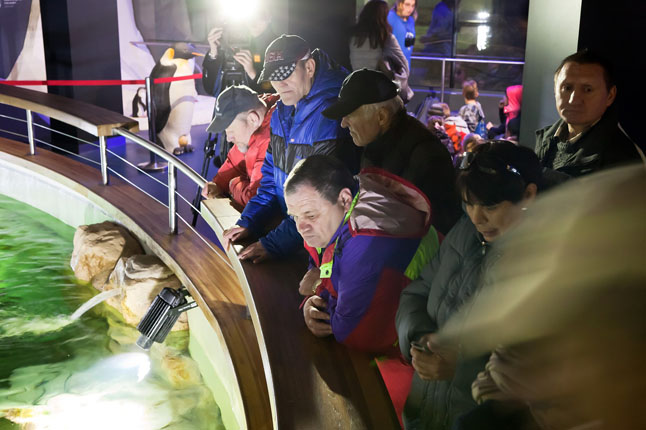 Jiems buvo surengta ekskursija po rekonstruotą akvariumą, vėliau jie apsilankė delfinų ir kaliforninių jūrų liūtų pasirodyme.