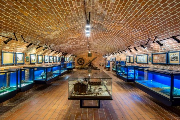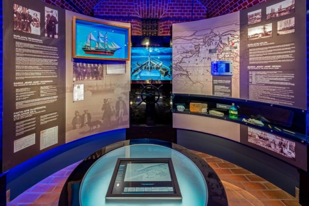 Vienoje iš restauruotų erdvių atidaryta itin intriguojanti ir itin lankytojų pamėgta ekspozicija „Jūrų katastrofos ir Lietuva“. Pasak Jūrų muziejaus direktorės Olgos Žalienės, ji rengta atsiremiant į mintį, jog jūros neužvaldysi, todėl būtina, pažįstant ją, išmokti sugyventi su ja. Pagrindine ekspozicijos ašimi tapo vienas įspūdingiausių ir didžiausių muziejaus eksponatų – praeito mažiaus pradžios vežimas nuleisti valtims iš Melnragės laivų gelbėjimo stoties. Šis vežimas buvo traukiamas arkliais, mediniai jo ratai kaustyti geležimi, kad neklimptų į smėlį. Ekspozicijos lankytojai, patekę į paslaptingą, o kartkartėm – net bauginančią atmosferą, kurią sustiprina ir besileidžiantis žemyn, tunelį primenantis skliautuotas poternos koridorius, paslaptingi garsai ir vaizdo projekcijose atgijusiosios anapusinės būtybės, patys išgyvens sudužėlių jūroje būseną ir pabandys išsigelbėti.