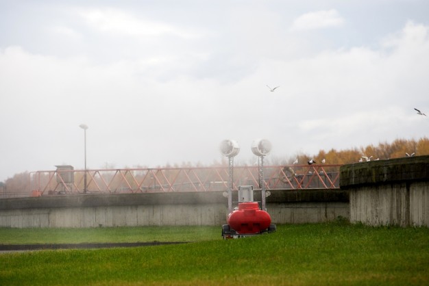 „Klaipėdos vanduo“ Dumpių nuotekų valykloje kvapus jau mažina ir naujausia technologija – nuo rugpjūčio pradžios pradėjusios veikti dvi mobilios ir viena stacionari patrankos. Jos purškia kvapą mažinantį preparatą sumaišytą su vandeniu, taip suformuodamos dulksną ir sudarydamos kliūtį kvaposklidimui miesto link.
