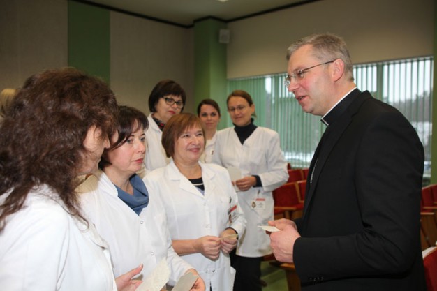 Kreipdamasis į susirinkusius ligoninės darbuotojus, Ganytojas perteikė šv. Kalėdų esmę: "Žmogus savo širdyje nešioja Dievo ilgesį. Visi mes nujaučiame, kad tikrovė,esanti aplink mus, yra daug gilesnė, negu mūsų kasdienybė. Vien tik dėl to, kad egzistuoja ta nuostabi meilės patirtis, jau galime sakyti, kad mes nešiojamės savyje dovaną, kuri pranoksta regimą pasaulį. O jai įžvelgti reikalinga širdies rega... Kalėdas galime suprasti tik tada, kai mes į kitus žmones ir į mus supantį pasaulį žvelgiame meilės akimis. Dievas žengia prie žmogaus ir atsiduoda į jo rankas kaip kūdikis. Todėl Kalėdos yra Dievo ir žmogaus susitikimo šventė."