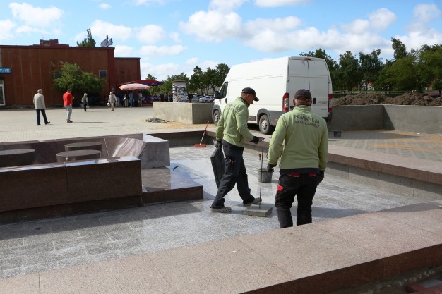 "Didžioji dalis darbų jau yra pabaigta, fontaną turėtų priduoti kitą savaitę. Pagal sutartį darbai turėtų būti baigti spalio mėnesį, bet mes tikimės, kad tikrai rugsėjo pirmai šis etapas bus priduotas", - pasakojo I. Šakalienė.