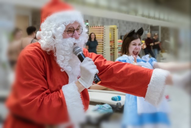 Mugės dalyviams Klaipėdos baseinas dovanojo pramogas vandenyje ir pirčių zonoje, kvietė į šventinę popietę. Visus pasiruošimo darbus užbaigti savo padėjėjams elfams ir nykštukams patikėjęs Kalėdų senelis rado laiko specialiai atvykti iš Laplandijos.