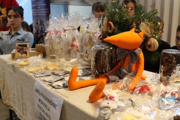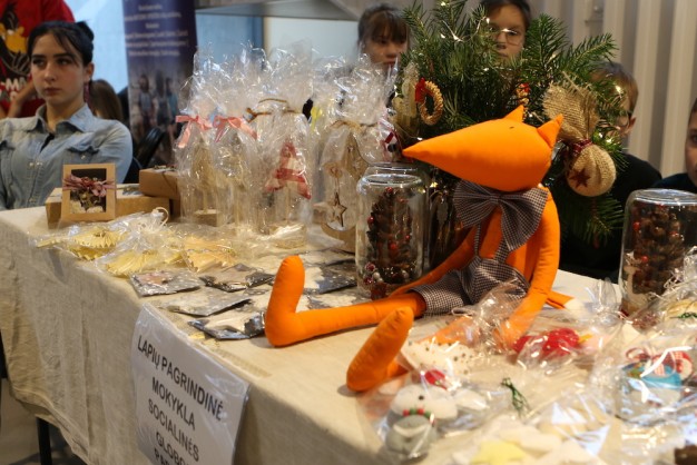 Šventiniai kepiniai, dirbiniai iš medžio ir molio ir kiti mažųjų kūrėjų darbeliai įžiebė Kalėdų ugnelę ir šildė dovanėlių artimiesiems atvykusių įsigyti širdis.