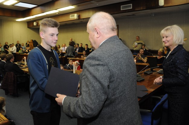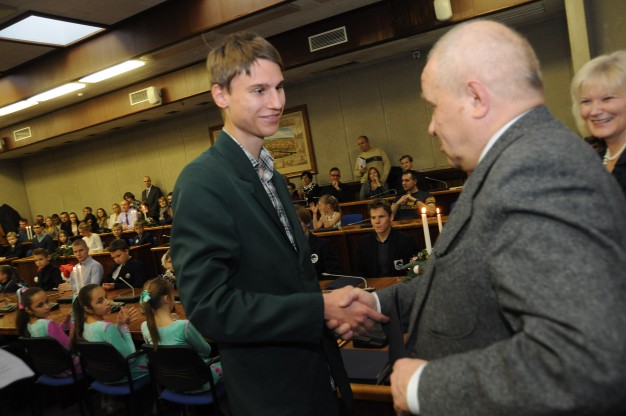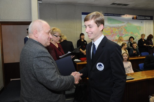 Už pasiektus rezultatus apdovanojimai buvo skirti 97 uostamiesčio moksleiviams: 20-čiai sportinius, 38-iems meninius pasiekimus ir 39-iems akademinius pasiekimus gavusiems laureatams. Juos sveikino Klaipėdos miesto mero pavaduotojas Vytautas Čepas, Tarybos narys Saulius Budinas ir Švietimo skyriaus vedėja Laima Prižgintienė. „Varpo“ gimnazijos abiturientai, dėkodami miesto merui ir Švietimo skyriaus vedėjai, pažadėjo jog, kad ir kur iškeliautų, būtinai sugrįš į Klaipėdą, pridurdami: „Čia – mūsų namai“.