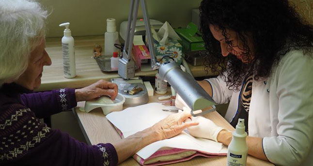 Manikiūro meistrės Irina ir Reda puošia senjoras