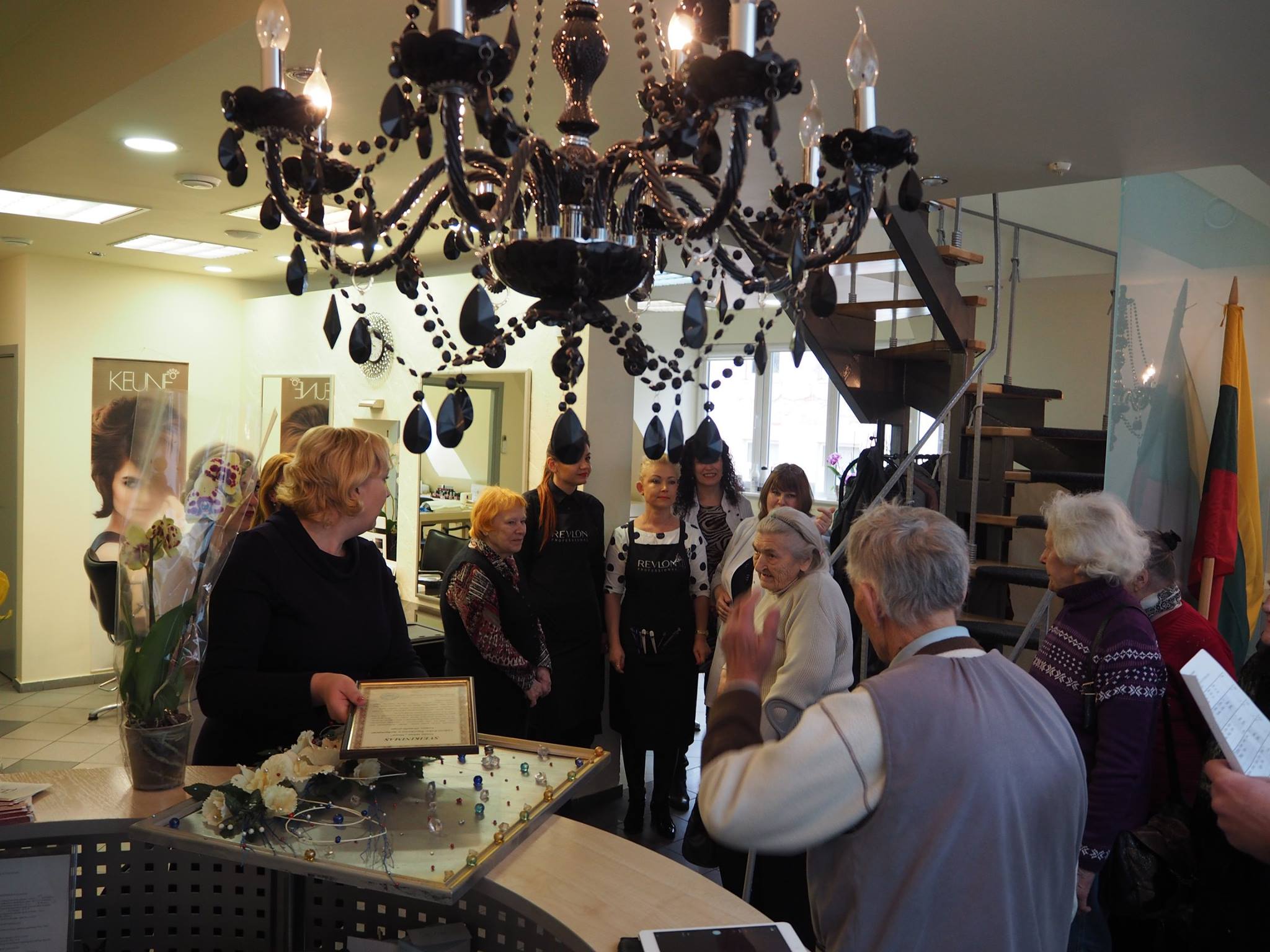 Susitikimas prasidėjo gražiu pasveikinimu. Atvykę į saloną svečiai nuoširdžiai dėkojo savo ir įstaigos vardu (vadovas Ginter Harner), įteikė dovaną - savo rankomis gamintą meninį dirbinį ir nuostabią orchidėją, kurią grožio salono kolektyvas įsipareigojo prižiūrėti ir puoselėti.