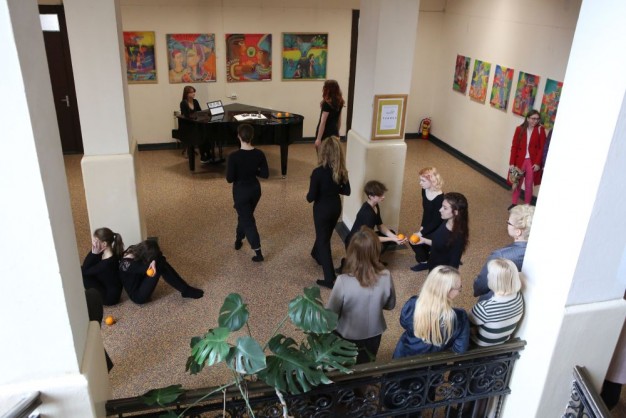 "Pasiėmę grafikos darbą bandome jį įgyvendinti. Tai performansas, tokie paveiksliukai, galima taip pasakyti. Viena mergaitė improvizuoja šokį", - prieš prasidedant renginiui kalbėjo J. Grigaitienė.