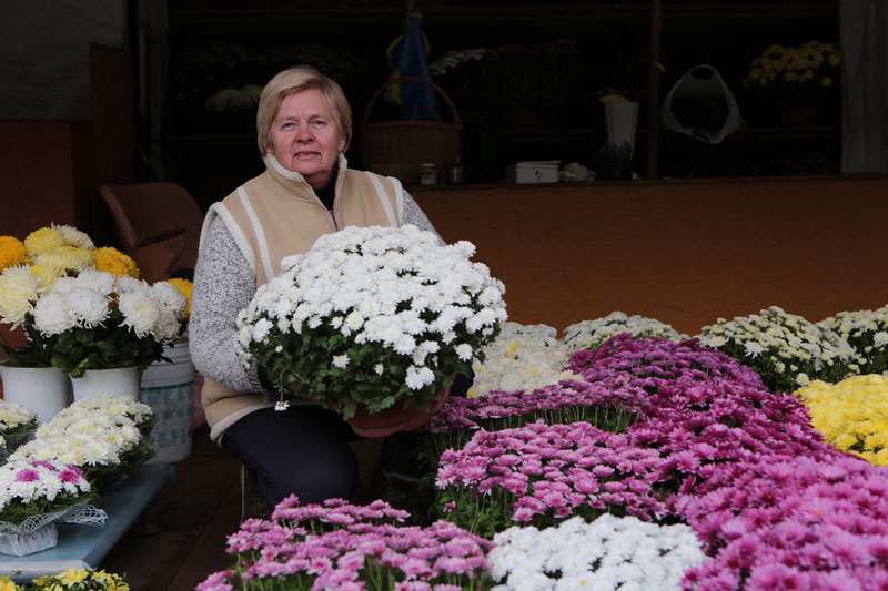 "Už tokį didžiulį chrizantemų krūmą prašau vos 3 eurų, bet, atrodo, žmonėms vis tiek per brangu. Kai dar kainas skaičiavome litais, toks krūmas kainuodavo 12 eurų - tikrai geriau pirkdavo. Matyt, kai dabar taip viskas brangsta, žmonės skaičiuoja, ar pirkti tik žvakę, ar dar ir gėlių", - rankomis skėsčiojo savo pačios užaugintomis chrizantemomis prekiaujanti Onutė Šertvytienė.