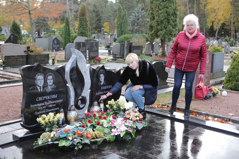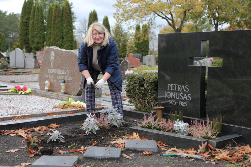 "Mes mėgstame puoštis, tad ant močiutės kapo visada daug gėlių. Čia dar palaidoti močiutės teta ir jos vyras. Kiekvieno nuomonė apie kapų puošybą skirtinga, bet man atrodo, kad tam nereikėtų gailėti pinigų - turi būti daug gėlių, žvakių. Man pačiai malonu pasidžiaugti kapu, kai pavyksta gražiai papuošti", - daugybe dirbtinių gėlių puokštėmis papuoštą kapą rodė Antonina Grišenkova.