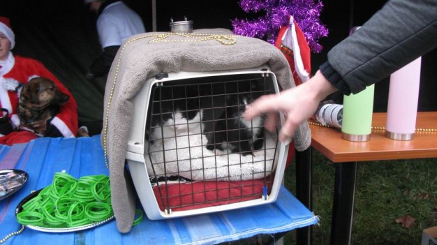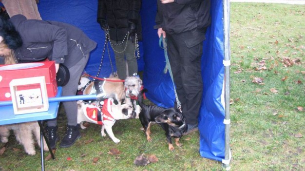 Miestiečiai atsivedė ir savo keturkojus draugus, vienas už kitą gražesnius ir papuoštus. Buvo didelis ir triukšmingas sujudimas. Vyko gražiausiai papuošto gyvūno konkursas, augintiniai demonstravo tai, ko juos išmokė šeimininkai, nepamiršti ir su savo draugais atėję vaikai. Bene daugiausia dėmesio sulaukė avytė Dangė, nes ji šunų puotoje buvo tik viena.