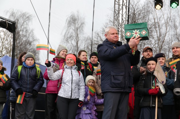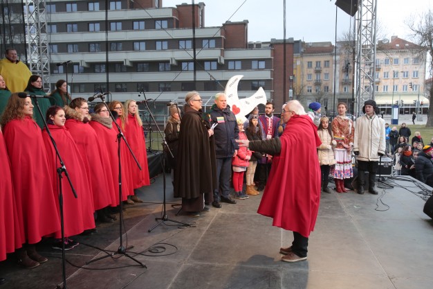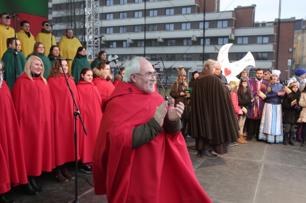 Su laisvės diena miestiečius iškilmingai pasveikino miesto meras Vytautas Grubliauskas ir pranciškonas brolis Benediktas, kuris priminė, jog Klaipėda yra Vilties miestas. Į sceną žengė ir vilties piligrimai - skautai, kurie Kovo 11-osios proga surengė karališką žygį senuoju pašto keliu iš Nidos į Klaipėdą. Žygeiviai į uostamiestį atnešė Nidoje vaikų parašytus vilties laiškus Klaipėdos senoliams. Perduoti vilties paštą buvo patikėta miesto merui, o žygeiviai iliustravo brolio Benedikto sveikinimą- linkėjimą miestiečiams prie blogį kovoti gerumu, prieš neapykantą - meile, įveikti beviltiškumą tikėjimu ir viltimi, iš šių prasmingų žodžių sudėdami dėlionę - vilties paukštį, tikėjimo simbolį.