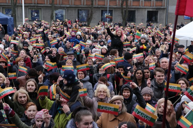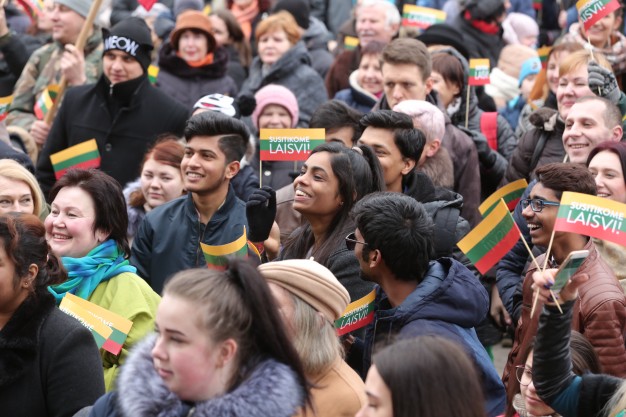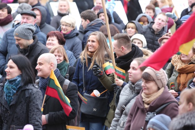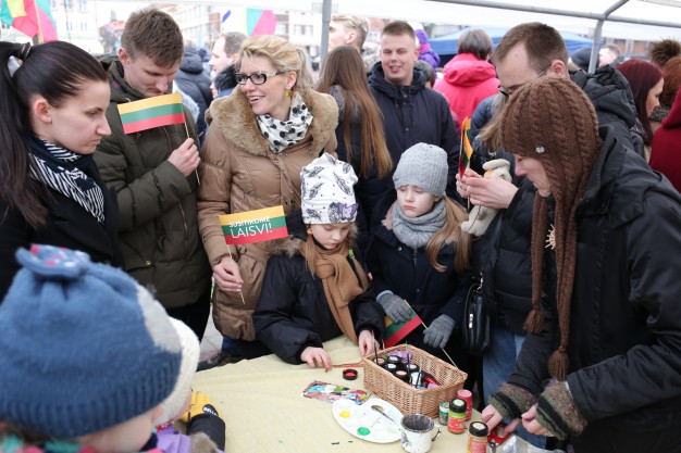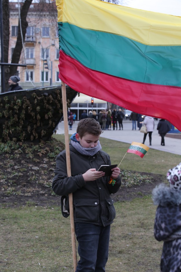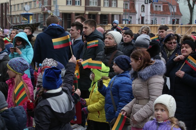 Kovo 11-ąją nešini trispalvėmis vėliavėlėmis klaipėdiečiai susirinko švęsti Lietuvos nepriklausomybės atkūrimo dieną Atgimimo aikštėje.