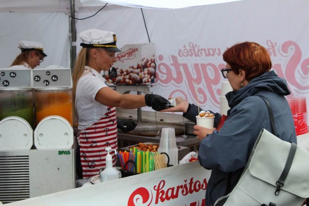 Panašu, kad dėl kainų prekybininkai nemeluoja. Nes prie maisto produktus pardavinėjančių kioskų pirkėjų netrūksta. Alaus bokalas šiemet kainuoja tiek pat, kiek ir pernai – 4 eurus. Kai kuriose vietose – 3 eurus. Giros litras – 2,5 euro. Spurgyčių kibirėlių kainos: 12 eurų – didelis, 5 eurai – vidutinis, 3 eurai – mažiausias.