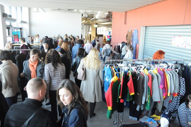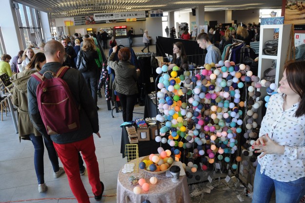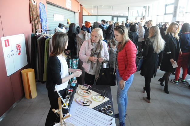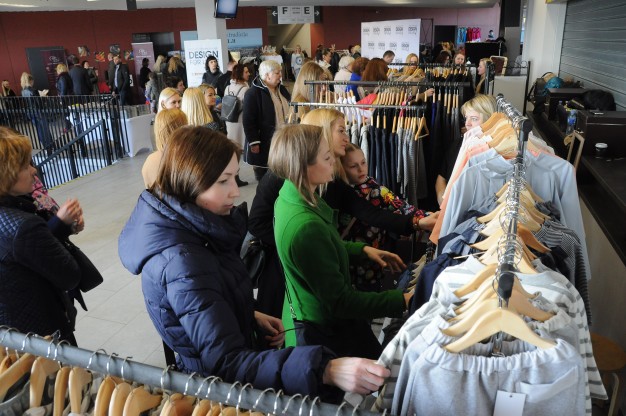 Mados ir dizaino mugės dalyviai išsirikiavo “Švyturio” arenos antrojo aukšto fojė. Vos tik prasidėjus renginiui į jį plūstelėjo tiek žmonių, jog buvo sunku praeiti ir trūko oro. Tiek pardavėjai, tiek pirkėjai pastebėjo, jog stinga matavimosi kabinų, o matuotis tikrai buvo kama ir ką.