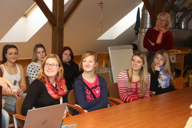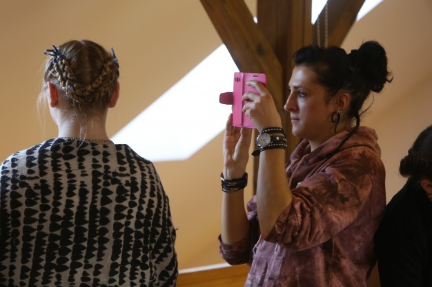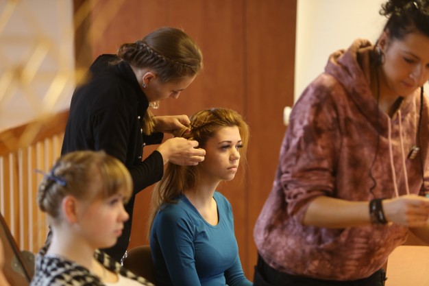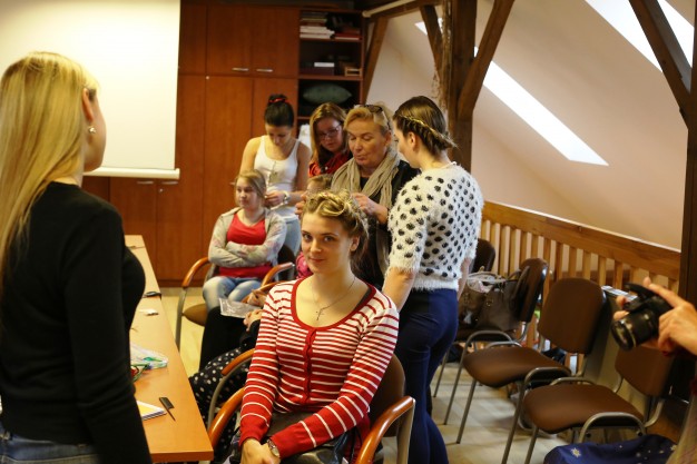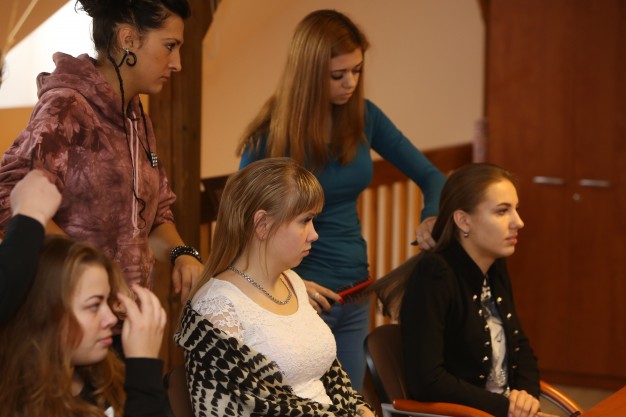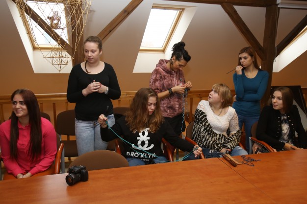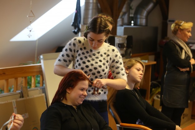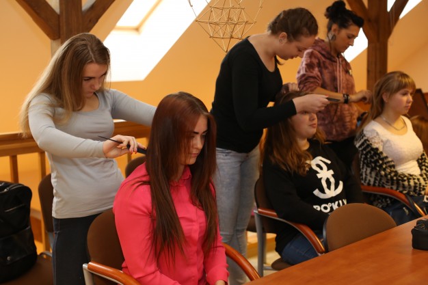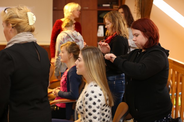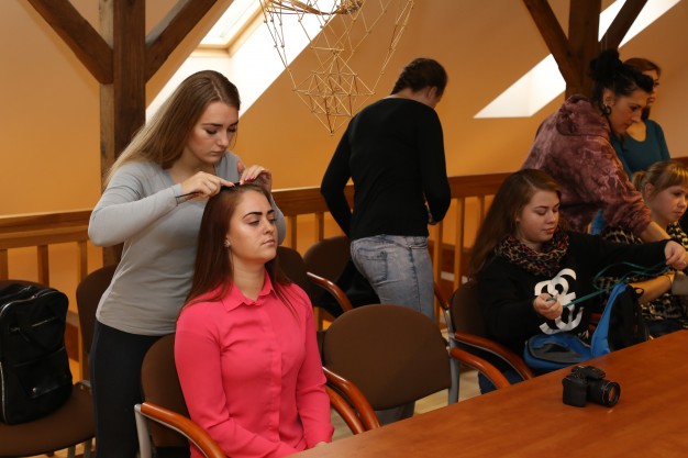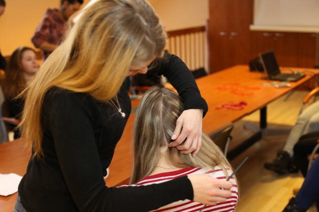Ketvirtadienio rytą Etnokultūros centre tikrai buvo į ką akis paganyti. Klaipėdos paslaugų ir verslo mokyklos pirmojo kurso kirpėjo specialybės merginos mokėsi pinti kasas.