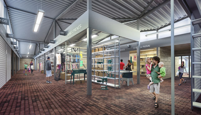 Į lauko turgavietę bus galima patekti einant pasažu, kurio vienoje pusėje bus kioskai, kitoje - vietos prekybai iš automobilių. Per vidurį po stogine bus išdėstytos poilsio salelės su suoliukais, želdiniais.