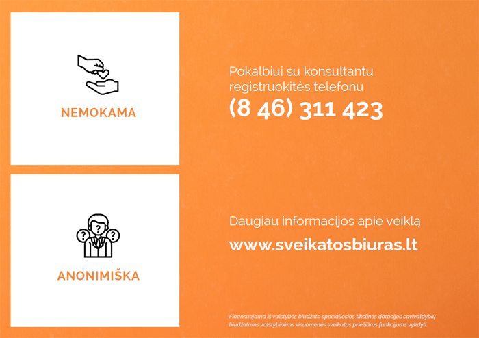 Konsultavimo paslaugos Klaipėdoje, teikiamos asmenims nuo 14 metų. Konsultacijos anonimiškos, nemokamos.