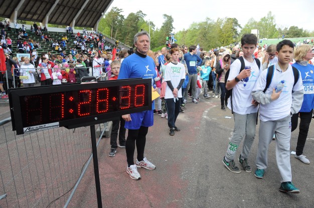 Na, ir maždaug apie 14 val. Atgimimo aikštėje pasirodė baikeriai ir „Senų kibirų“ asociacijos narių vairuojami fordai, opeliai, kadilakai, mersedesai, moskvičiukai. Po maždau 20 minučių Atgimimo aikštėje pasirodė ir pirmieji 10 km įveikiantys bėgikai. Tarp jų – ir maratono bėgimo įgūdžius Londone įgijęs Kristoferis. Visi – baikeriai, „seni kibirai“ ir ypač bėgikai - buvo apdovanoti starto belaukiančiųjų ir žiūrovų audringais plojimais. Prabėgus sparčiausiems - masinis 3 km bėgikų startas.