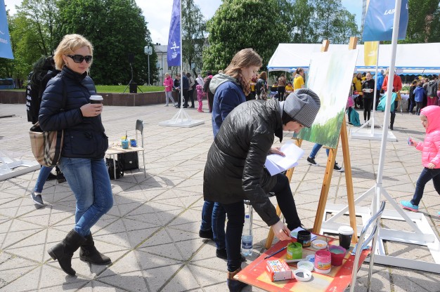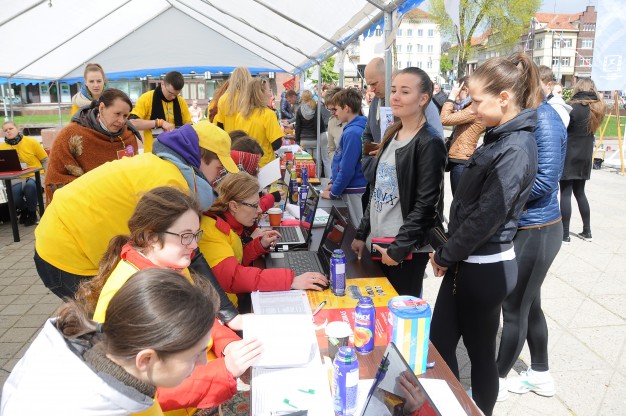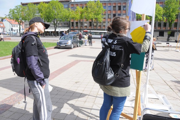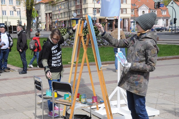 Kaip ir visada, gausiausiai bėgikų rinkosi Atgimimo aikštėje. Palydinčiųjų – taip pat. Čia sutikau vienuolikametę Juliją, kuri, atlydėta tėvelio ir mamos, bėgo pirmąjį kartą. Čia VE pakalbino guvių, onkologinėmis ligomis sergančių moterų iš Šilutės būrelį. Bėgti atėjo ir šeimyninė pora Neringa su Leonardu. O štai ponia Jolita bėgo jau 3-ią kartą ir dar dvi bičiules – Iloną su Lina - suagitavo. Joms tai pirmoji bėgimo patirtis. Dėmesį patraukė vyrų kompanija. Ant jų sportinių kostiumų įskaičiau „Belarus“. Mogiliovo vyrai atlydėjo savo miesto įžymybę maratonininkę Jeleną Makolovą, kuri bėgo 10 km. Delegacijos vyrai – gydytojai, savivaldybės tarnautojai - apsiribojo 3 km. Ir visi iki starto turėjo ką veikti. Kas šoko pagal Pranciškaus Memėno diriguojamo Karinių jūrų pajėgų orkestro melodijas, kas stebėjo, kaip tapomi Vilties spalvomis 10 paveikslų. Drobes visomis vaivorykštės varsomis spalvino Dailės akademijos Klaipėdos fakulteto studentai. Jiems „dirigavo“ garsūs Lietuvos dailininkai Edvardas Malinauskas, Danutė Žalnieriūtė, Simonas Žaltauskas. Tiems 10 paveikslų vakare, „Švyturio“ arenoje vyksiančiame paramos koncerte bus skelbiamas aukcionas. Įdomu, kas juos pasišaus įsigyti?
