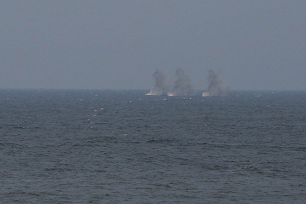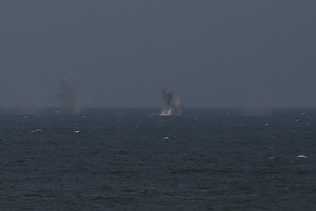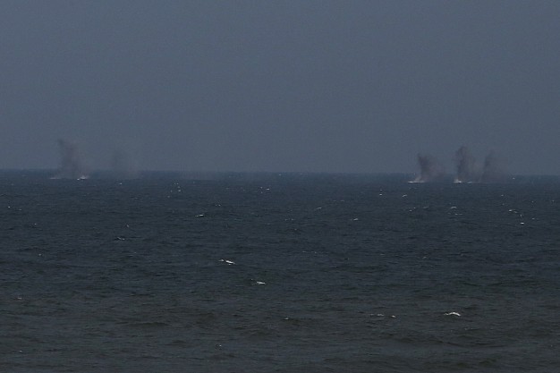 Sviedinys, paleistas iš pabūklo Kairių poligone ir nuskriejęs beveik 9 kilometrų atstumą virš Kuršių marių ir Kuršių nerijos, sprogo jūroje. Karių taikinys – vos 5 metrų ilgio raudonas „laivelis“, nutolęs beveik 4 kilometrus nuo kranto – smarkiai susiūbavo vos išsilaikydamas virš vandens. Jau ketvirtuoju šūviu tikslas buvo pasiektas. „Prisišaudėm“, – per radijo stotį pranešė ugnies koreguotojų grupės vadas.