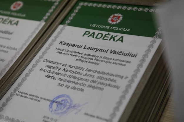 KAVPK Prevencijos skyriaus viršininkas Gintautas Pocevičius taip pat dėkojo visiems aktyviems ir neabejingiems piliečiams, prisidedantiems prie to, kad gyventi būtų saugiau.