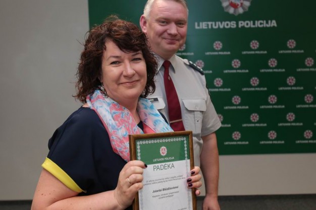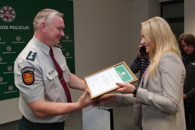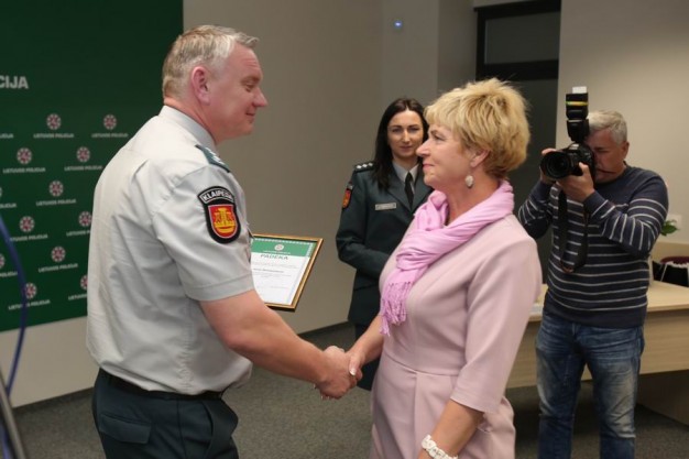 Jis įteikė padėkas policijos pareigūnams Daliai Savickienei ir Dariui Jankauskui.