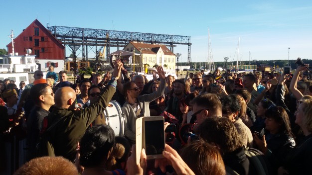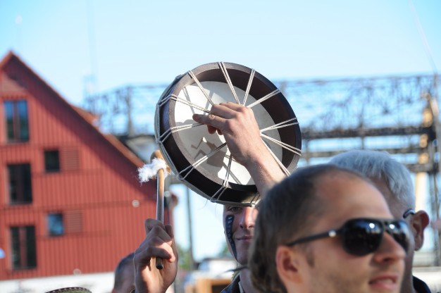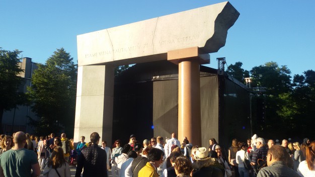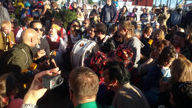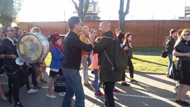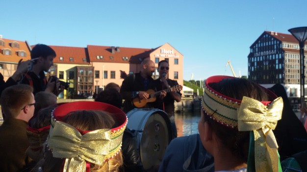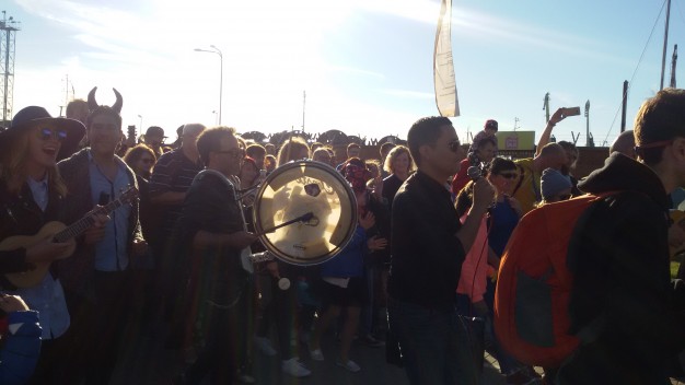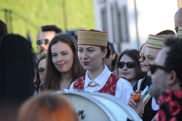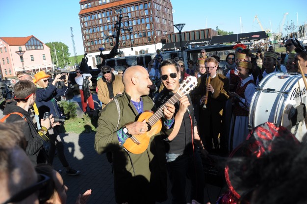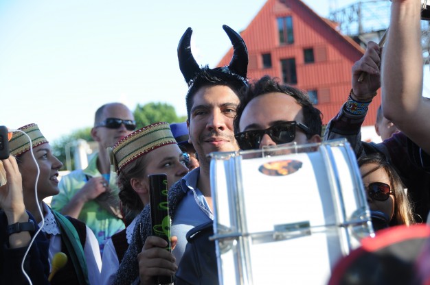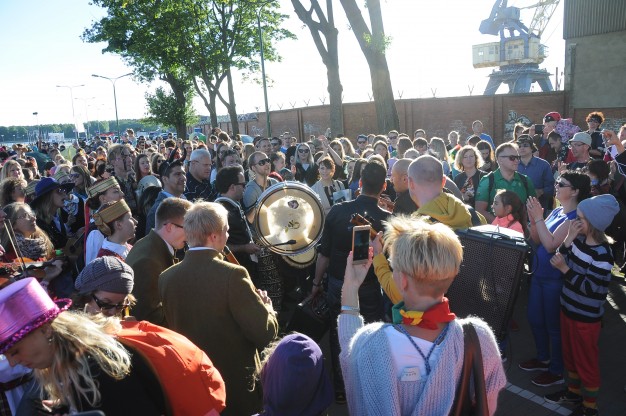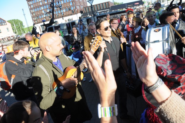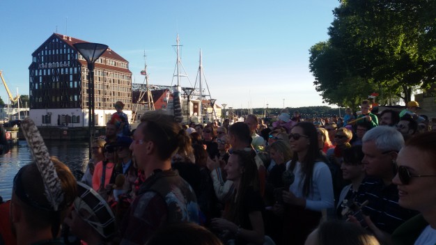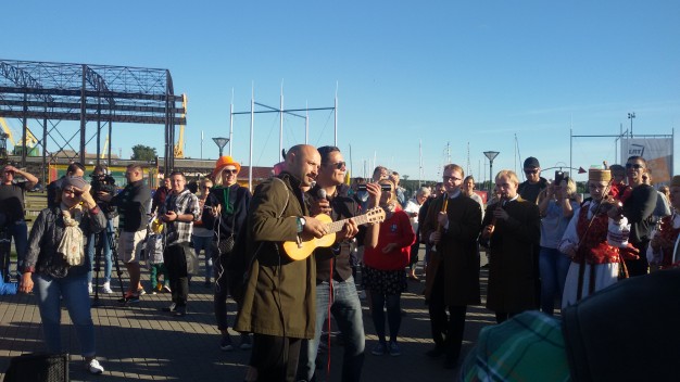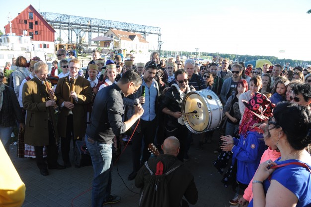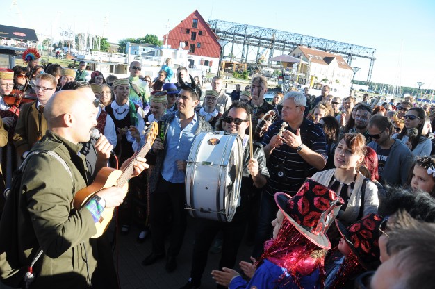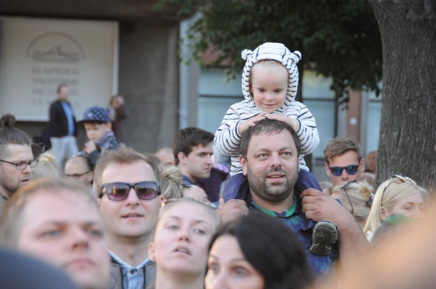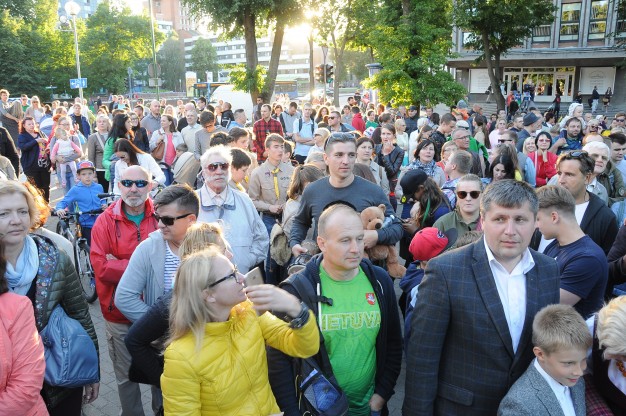 Šios dienos vakarą spalvotą lietuvybę „traukti iš lentynų“ ragino Jurgis Didžiulis, sukvietęs nuotaikingus miestelėnus į spalvingą, tarškantį ir barškantį būrį – muzikinę eiseną. Būgnais, dūdelėmis, tarškučiais ir kitais instrumentais savo bei praeivių nuotaiką kelianti eisena pajudėjo nuo Senosios Perkėlos ir šoko senamiesčio gatvėmis, kol pasiekė Paminklą vieningai Lietuvai „Arka“.