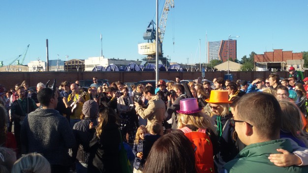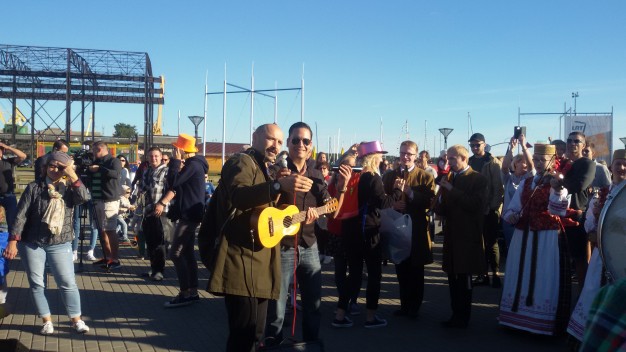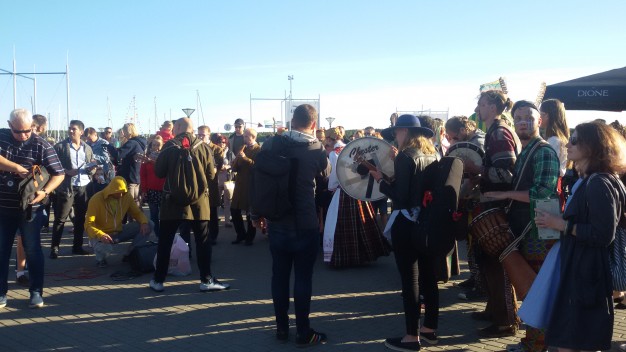 Vėliava apsisiautęs ir būgneliu mušantis renginio dalyvis Viktoras iš Palangos, paklaustas, kodėl dalyvauja šiame renginyje, džiaugėsi: „Todėl, kad čia linksma, specialiai iš Palangos atvažiavau. Tokie renginiai labai reikalingi, reikia švęsti linksmai“. Jis sako, kad ankstesniais metais himną giedodavo ant Birutės kalno.