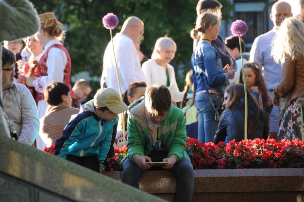 Būryje sugyveno skirtingos kartos: nuo pačių mažiausių, vaikiškuose vežimėliuose riedančių ar tėvams ant pečių įsitaisiusių raitelių, iki gintariniais karoliais ir tautine atributika pasipuošusių senjorų. Minioje plukdydami trispalvę, žmonės skandavo Lietuvai „Myliu“, ritmingai dainavo pagrindinį eisenos šūkį: „Lietuvybė, padėta lentynose – nesiskaito“, giedojo himno fragmentus. Prie muzikuojančiųjų jungėsi gatvės praeiviai, šypsojosi ir mojavo miesto svečiai.