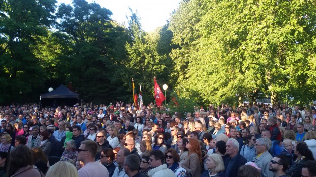 Muzikinei eisenai pasiekus galutinį tašką – „Arkos“ paminklą, susirinkusiuosius sveikino kartu žygiavęs Klaipėdos meras Vytautas Grubliauskas: „Matydamas tokį gausų jūsų būrį, labai džiaugiuosi ir didžiuojuosi, jog Lietuva ir Klaipėda išmoko ir moka švęsti vieną iš svarbiausių švenčių valstybei. Mes mokame švęsti išradingai ir jaunatviškai, bet kartu ir oriai bei atsakingai“. Jis didžiavosi, jog Klaipėdos miestas buvo įkurtas metais anksčiau, nei buvo karūnuotas Karalius Mindaugas, taigi Klaipėda yra netgi vyresnė už suvienytą Lietuvos valstybę.