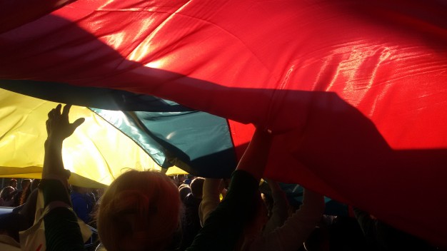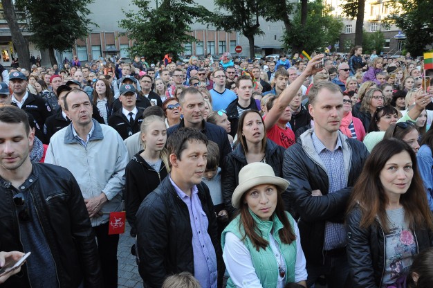 O mergina, su šypsena veide nešanti trispalvę, Giedrė Bugolauskaitė, sakė atėjusi čia, nes jai Lietuva labai daug reiškia: „Čia man labai gera, nerealus jausmas laikyti trispalvę ir skanduoti: „Lietuva“.