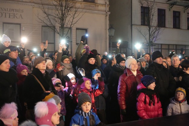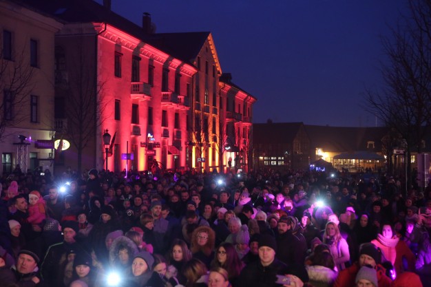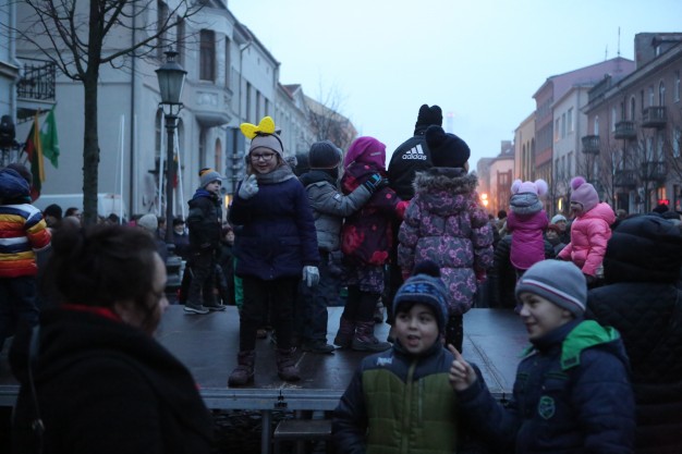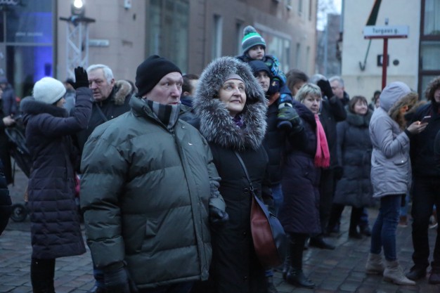 Šventės atmosferą kūrė ir publiką judėti kvietė Klaipėdos universiteto šokio trupė „Leader Dance“, o po merginų pasirodymo visą Turgaus gatvę nušvietė įspūdinga šalies vėliavos spalvų instaliacija.