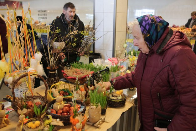 Šventines puokšteles pardavinėjanti ponia Kristina sako, kad žmonės Velykoms pradėjo ruoštis jau nuo antradienio, ieškoti puokštelių ir kitokių puošybos elementų.