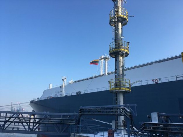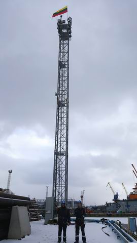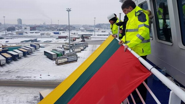 Vakar 7 val. Klaipėdos meras Vytautas Grubliauskas ir Klaipėdos valstybinio jūrų uosto direkcijos generalinis direktorius Arvydas Vaitkus maždaug 8 metrų ilgio Lietuvos vėliavą iškėlė Kruizinių laivų terminale.