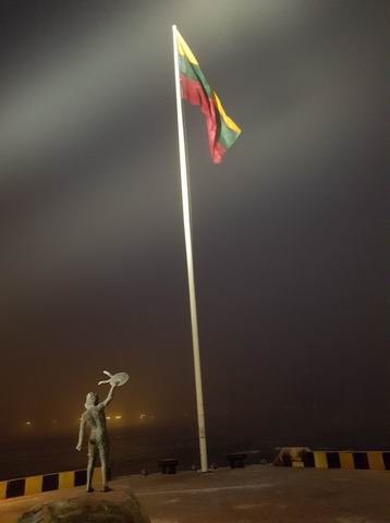 Ant pačios Uosto direkcijos pastato viršaus (kiek aukščiau nei 9 aukštų namas) trispalvė iškelta prieš metus. Ji apšviesta, tad matoma iš visos centrinės miesto dalies.