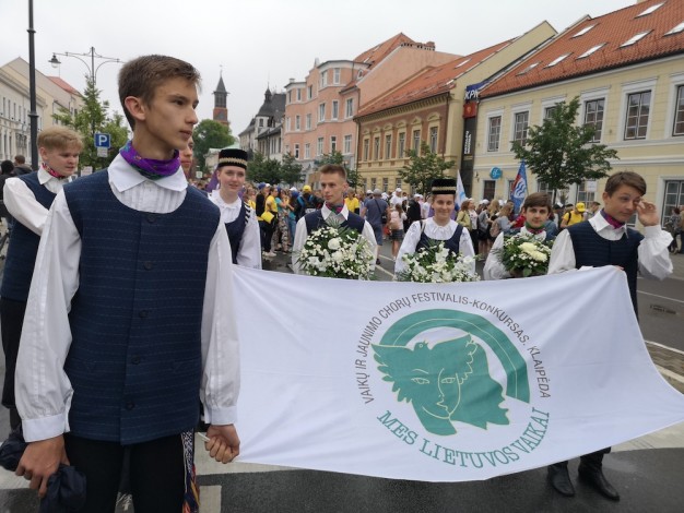 VI Lietuvos vaikų ir jaunimo chorų festivalio-konkurso „Mes - Lietuvos vaikai“ dalyviai šiuo metu rikiuojasi į šventinę eiseną, kuri Herkaus Manto gatve pajudės Vasaros estrados link. Čia 17 val. vyks finalinis dainų šventės koncertas.