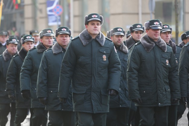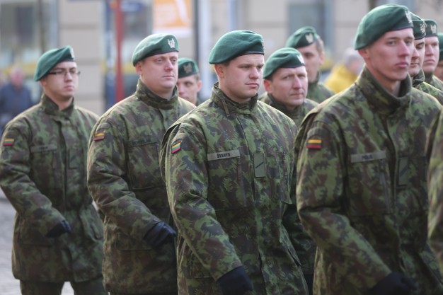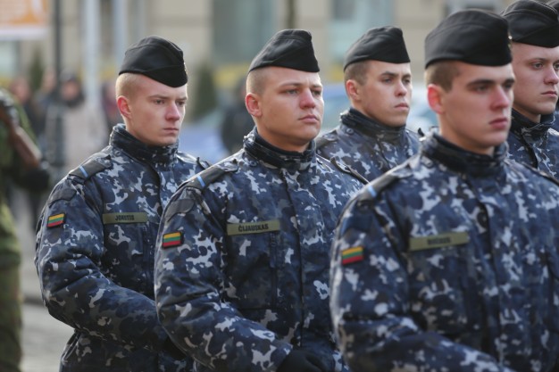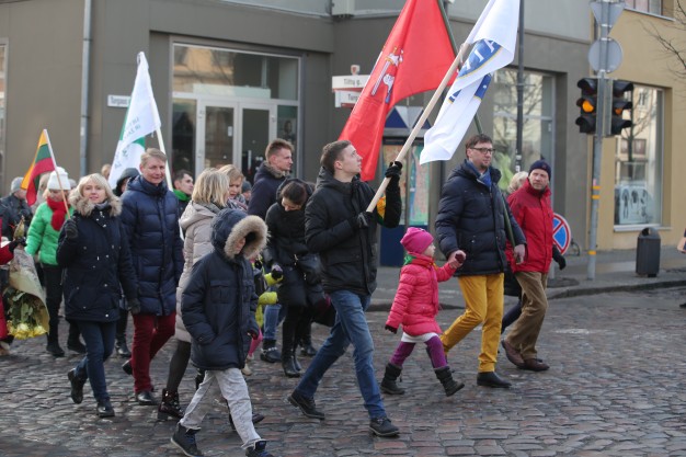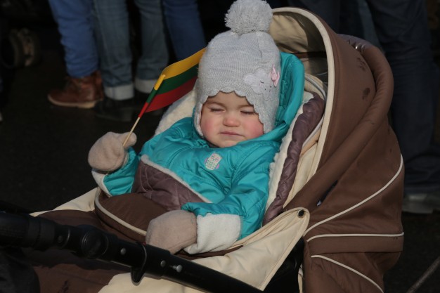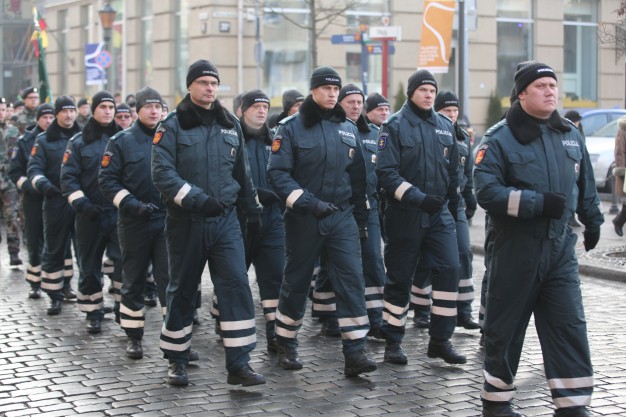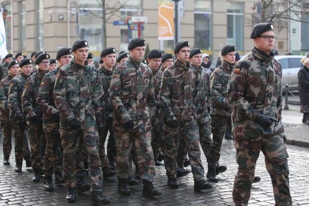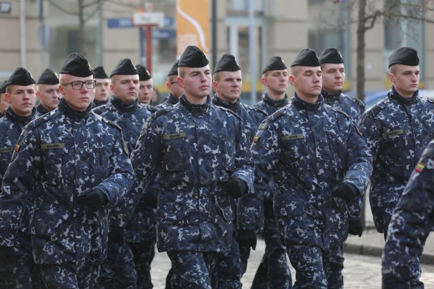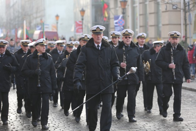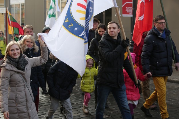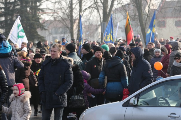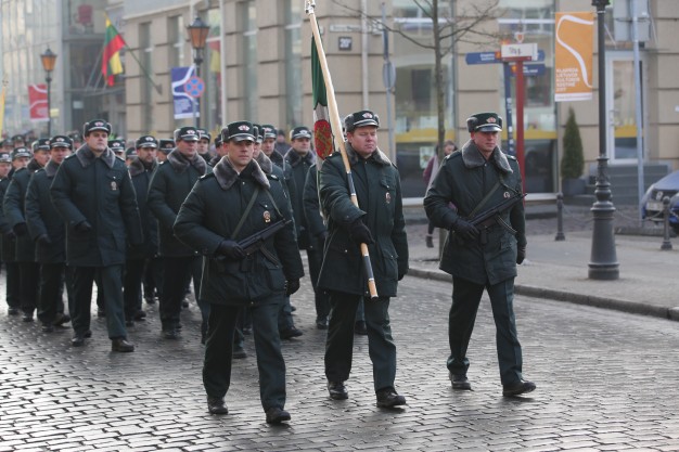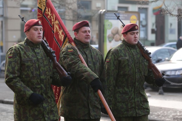 Vidurdienį aikštėje vyko tradicinė iškilminga rikiuotė ir Lietuvos valstybės vėliavos pakėlimas.