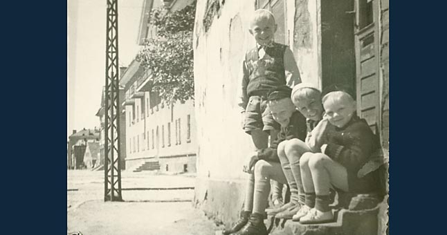 | Žaliosios gatvės vaikai: stovi Rimantas Petravičius, iš kairės sėdi: Rimantas Navalinskas, Valius Petravičius, Vidas Navalinskas. |