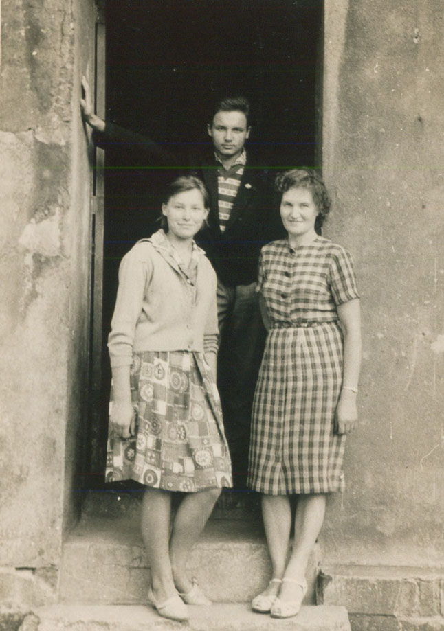 BE ŠEIMOS GALVOS. Per ketverius metus, kai šeimai teko verstis be šeimos galvos, Čijunskiukai suprato, kad elementarių egzistencijos reikmių tenkinimo nuo medžių kaip lapų neprisiskinsi. Loreta ir Vygandas su mama Laima Čijunskiene ant Didžiosios Vandens g. 14-ojo namo laiptelių sunkiuoju gyvenimo periodu.