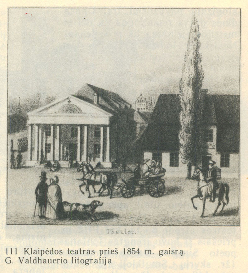 1854 m. mieste kilus gaisrui teatras sudegė. Teatro griuvėsius nupirko pirklys Masonas ir savo lėšomis ant senųjų pamatų 1857 m. pastatė naują pastatą, kurio bent jau trys fasadai tebestovi ir dabar. Prasidėjus Pirmajam pasauliniam karui, teatras buvo uždarytas. 1935 m. į Klaipėdą buvo perkeltas Šiaulių teatras. Jį globoti, tvarkyti santykius su magistratu ėmėsi "Aukuro" draugija. Klaipėdoje buvo vienintelis teatro pastatas. Jame vaidino kasmet iš Vokietijos atsiunčiama dramos trupė, gastroliuojantys kolektyvai.