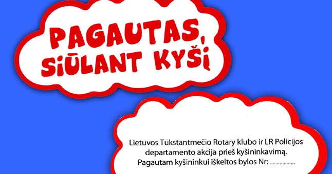 Policijos departamentas kartu su Vilniaus Lietuvos Tūkstantmečio Rotary klubu pradeda vykdyti akciją „Aš neimu kyšio“.