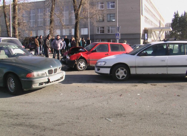 Avarija įvyko netoli Klaipėdos verslo ir technologijų kolegijos prieš 15 val. Miesto centro link Liepų gatve važiuojantis automobilis BMW 528 trenkėsi į prieš jį pristabdžiusį ir kairėn į Jaunystės gatvę susiruošusį sukti "Volkswagen Golf".